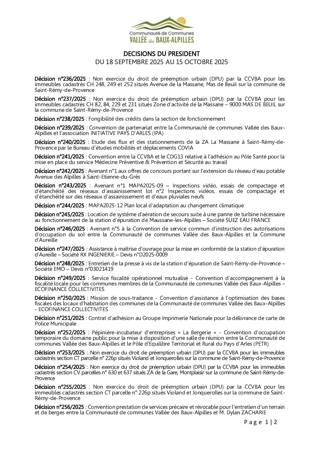 Décisions du 18.09.2025 au 15.10.2025