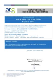 Analyses de l'eau: Analyses de l'eau décembre 2024 -