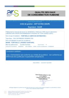 Contrôle sanitaire réalisé dans le cadre des articles du Code de la Santé publique et du décret du 11 janvier 2007 relatif à la sécurité sanitaire des eaux destinées à la consommation humaine